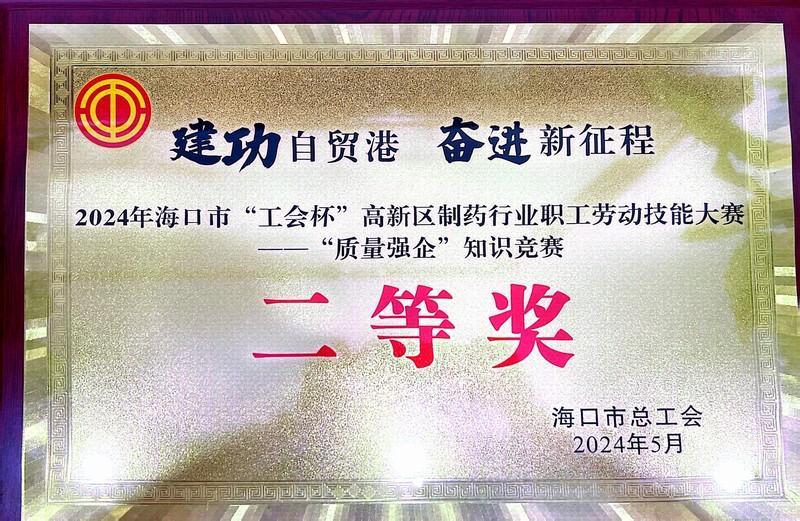 2024年??谑?ldquo;工會杯”高新區(qū)制藥行業(yè)職工勞動技能大賽活動“質(zhì)量強(qiáng)企”知識競賽--二等獎