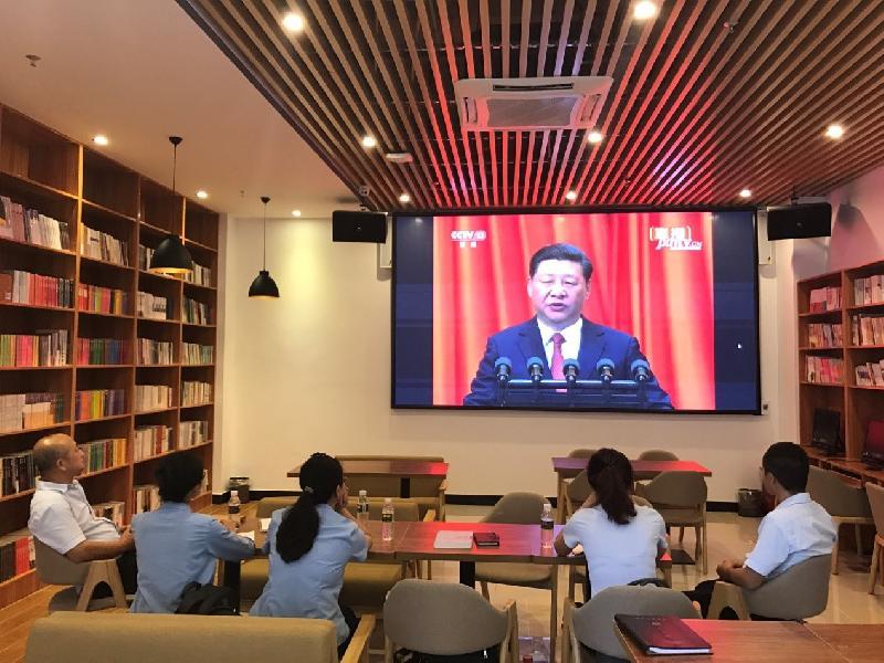 2017年8月7日下午,海南長(zhǎng)安國(guó)際制藥有限公司黨支部組織黨員、預(yù)備黨員、積極分子在高新區(qū)非公黨建服務(wù)中心學(xué)習(xí)建軍90周年大會(huì)習(xí)總書記的重要講話。