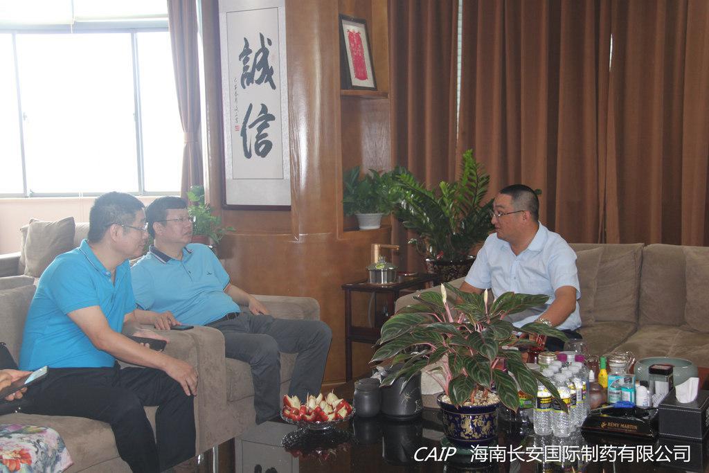 5月14日上午,海南省醫(yī)藥行業(yè)協(xié)會相關(guān)領(lǐng)導(dǎo)在協(xié)會會長陳益智帶領(lǐng)下,蒞臨海南長安國際制藥有限公司走訪調(diào)研(同行人員:舒小斌常務(wù)副會長、郭澤超副會長、魯紅秘書長、章志賢副會長、呂銘浩副會長、李亞男副秘書長等),總經(jīng)理汪立冬代表長安制藥與陳益智會長一行領(lǐng)導(dǎo)進行交流。