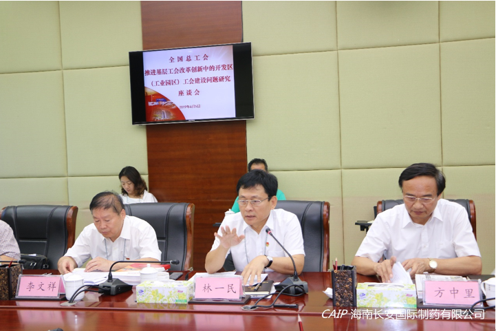 6月5日,全國總工會(huì)副主席、書記處書記蔡振華一行5人到??趪腋咝聟^(qū)就“推進(jìn)基層工會(huì)改革創(chuàng)新中的開發(fā)區(qū)(工業(yè)園區(qū))工會(huì)建設(shè)問題研究”主題開展專題調(diào)研。省總工會(huì)黨組書記、常務(wù)副主席王全,市人大常委會(huì)黨組副書記、副主任,市總工會(huì)黨組書記、主席方中里,高新區(qū)管委會(huì)主任林一民等陪同。在高新區(qū)工會(huì)的推薦下,海南長安國際制藥有限公司作為企業(yè)代表出席本次調(diào)研會(huì)議。