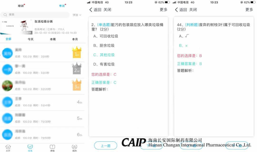 12月3日,長安制藥對當(dāng)天在崗人員進(jìn)行了生活垃圾分類在線考試,旨在提高員工意識。