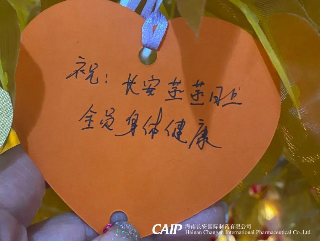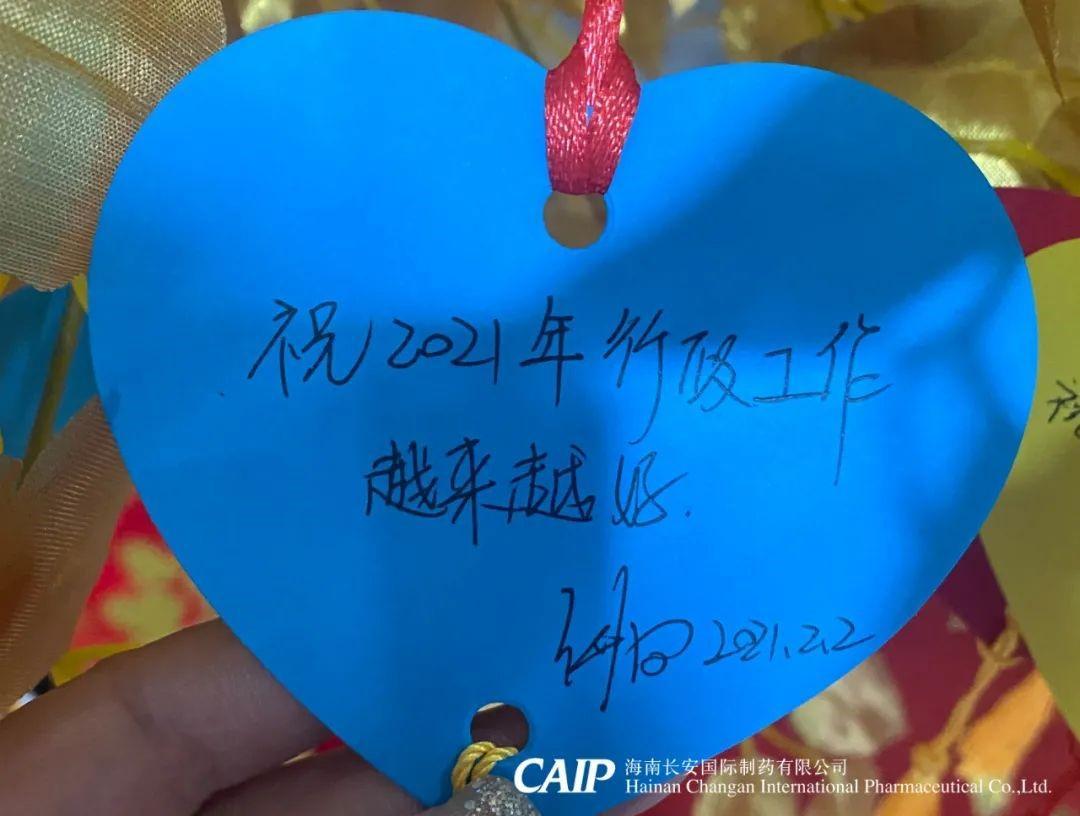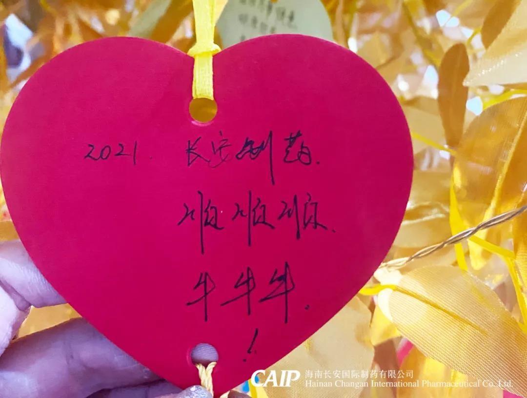許下心愿的同事們臉上洋溢著快樂的微笑,一張張的心型的祝??ㄆ粧煸诮鹕脑S愿樹上,這些祝福中蘊含著長安人對辭別舊歲喜迎新年的美好愿景和內(nèi)心最深處的愛意,同時也包括了同事們對長安制藥的真切祝福,對同事的美好祝愿,對個人未來的美好憧憬。