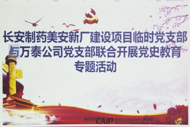 為了扎實開展黨史學習教育活動,感悟共產(chǎn)黨人奮斗歷程中直面艱難險阻的不屈精神,進一步加強黨員干部的黨性修養(yǎng)和理想信念,5月7日,長安制藥美安科技新城新廠建設(shè)項目臨時黨支部與萬泰公司黨支部在長安制藥美安科技新城新廠建設(shè)項目會議室聯(lián)合開展了黨史教育專題活動,教育引導黨員干部學黨史、悟思想、辦實事、開新局。