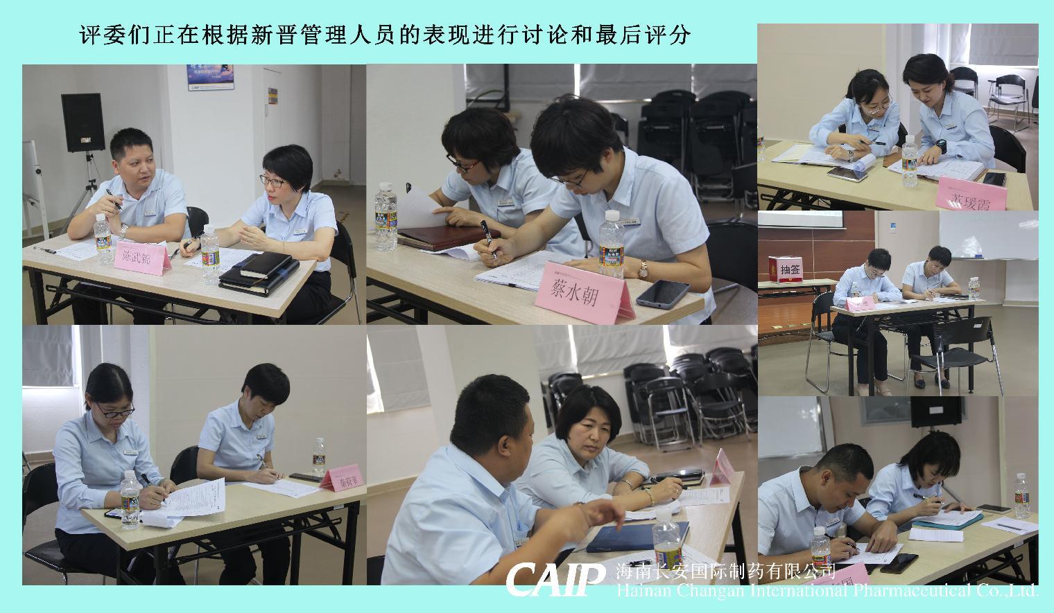 現(xiàn)場評估答辯分為三個環(huán)節(jié):自我介紹、現(xiàn)場必答題、抽簽答題。面試主考官由長安制藥中高層領導組成,每位新晉管理人員的面試主考官和第三個環(huán)節(jié)的答題都是由抽簽來決定,體現(xiàn)了公平公正公開的原則。