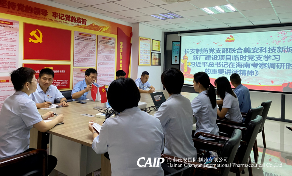 2022年5月26日上午,海南長安國際制藥有限公司黨支部聯(lián)合海南長安制藥美安科技新城新廠建設(shè)項目臨時黨支部召開專題學(xué)習(xí)會,學(xué)習(xí)《習(xí)近平總書記在海南考察調(diào)研時的重要講話精神》以及《海南省第八次黨代會報告》。