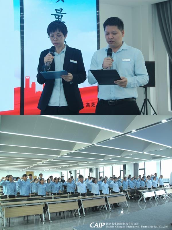 啟動(dòng)儀式上,長(zhǎng)安制藥質(zhì)量總監(jiān)溫小東及質(zhì)量受權(quán)人楊零九通過培訓(xùn)賦能全員。