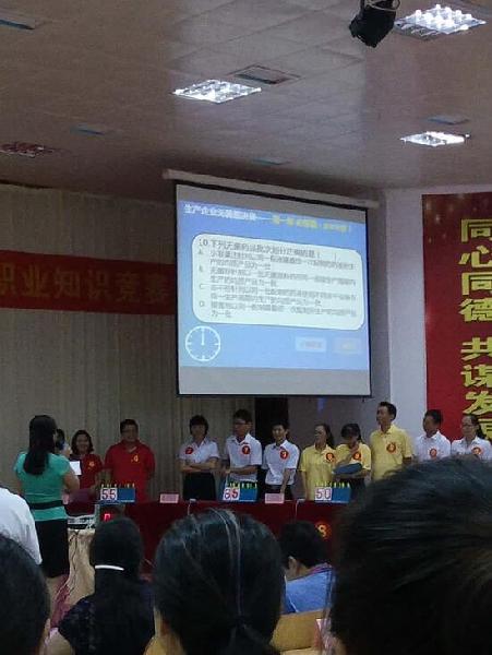 經(jīng)過三個(gè)月的初賽、復(fù)賽迎來了今天的決賽,生產(chǎn)企業(yè)無菌組決賽共分為三個(gè)環(huán)節(jié):必答題,搶答題,風(fēng)險(xiǎn)題。在決賽的現(xiàn)場,我們參賽選手反應(yīng)迅速,密切配合,展現(xiàn)豐富的知識(shí),秀出了我們的風(fēng)采。我們公司啦啦隊(duì)穿著統(tǒng)一服裝來到現(xiàn)場為我們的選手吶喊、助威!并秀出我們公司的口號(hào)“秀出自信,展現(xiàn)自我,非比尋常,長安最強(qiáng)”。