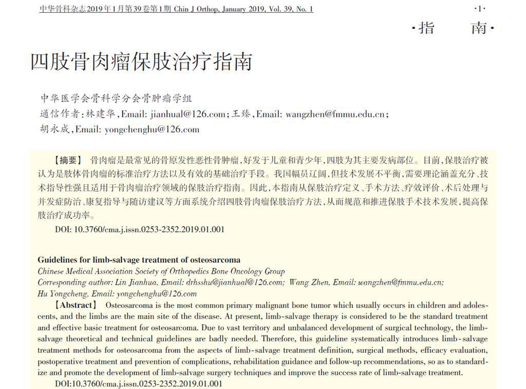 骨肉瘤是最常見的骨原發(fā)性惡性骨腫瘤,好發(fā)于兒童和青少年,四肢為其主要發(fā)病部位。目前,保肢治療被認(rèn)為是肢體骨肉瘤的標(biāo)準(zhǔn)治療方法以及有效的基礎(chǔ)治療手段。我國(guó)幅員遼闊,但醫(yī)療技術(shù)發(fā)展不平衡,需要理論涵蓋充分、技術(shù)指導(dǎo)性強(qiáng)且適用于骨肉瘤治療領(lǐng)域的保肢治療指南。因此,“四肢骨肉瘤保肢治療指南”從保肢治療定義、手術(shù)方法、療效評(píng)估、術(shù)后處理與并發(fā)癥防治、康復(fù)指導(dǎo)與隨訪建議等方面系統(tǒng)介紹四肢骨肉瘤保肢治療方法,為規(guī)范和推進(jìn)保肢手術(shù)技術(shù)發(fā)展、提高保肢治療成功率保駕護(hù)航。