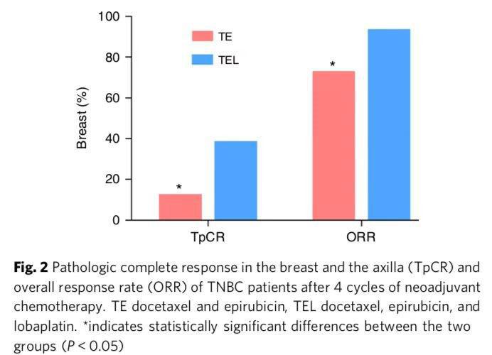 研究結(jié)果顯示:多西他賽和表柔比星方案中加入洛鉑作為TNBC的新輔助化療方案與多西他賽和表柔比星方案相比高顯著提高了TpCR率和ORR,毒性可以耐受; 短期來(lái)看還可以減少?gòu)?fù)發(fā)和轉(zhuǎn)移率。